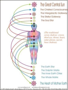 We have a total of 15 chakras, 4 that are above our heads and 4 that are below our feet, in addition to the 7 that we have in our physical bodies. This is the same if we are starseed souls or Earth souls. The 4 chakras located above our heads include, the Soul chakra, the Stellar Gateway chakra, the Intergalactic Gateway chakra, and the Christ Consciousness chakra. In a nutshell, these energy centers deal with spirituality and our connection to other worlds in this Universe and beyond. When incarnated on Earth we typically don’t utilize these, well not consciously at least. The 4 below our feet are, the Earth Star, the Dolphin Matrix, the Inner Earth Cities, and the Whale Matrix and are there to ground us and connect us to our planet. This is a very simplified explanation of these chakras but Earthlings are better at utilizing these.